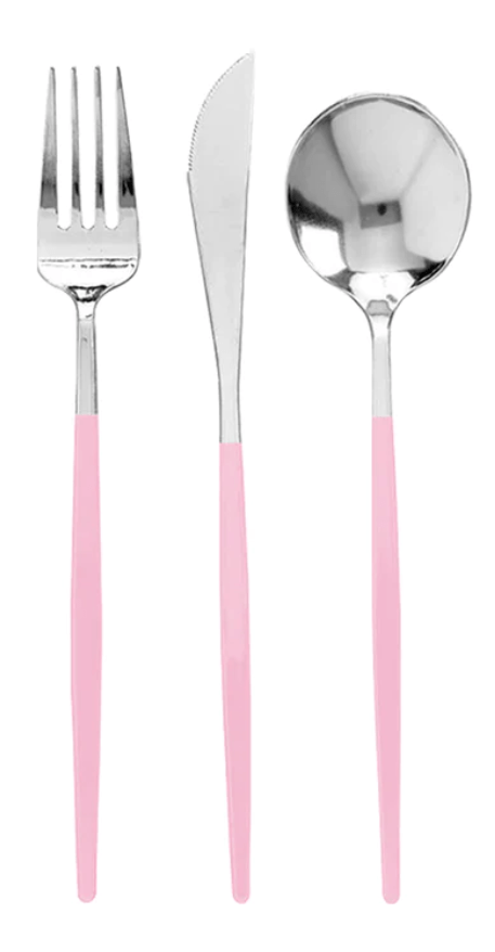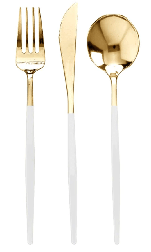 We have flatware in Gold, Silver, Black, & Clear. Let us know if you are looking for anything specific!
